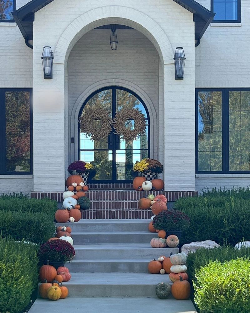 This is the perfect Fall and Autumn porch decor that will last through Halloween and Thanksgiving. Embrace the beauty of the season with our curated selection of pumpkins, gourds, and other seasonal decor. Let us transform the front of your home into a cozy autumn elegance that will delight your friends and neighbors.