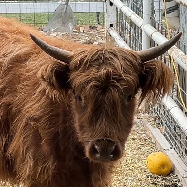 We’d love to introduce you to Betsy, one of our resident Highland cows who’s as gentle as she is fluffy! With her signature long horns, shaggy red coat, and curious nature, Betsy is truly the heart of the pasture. She’s known for her calm personality, soft eyes, and—of course—her appetite for pumpkins!